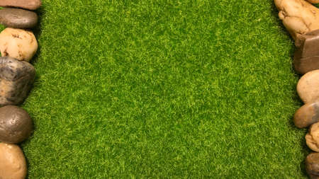 Patch of green grass background. Summer and spring banner. Golf club on green grass meadow. back garden grass. Green grass soccer field. Grass texture carpet. Green abstract. Grass with stones.
