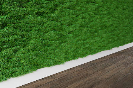 Green wall and green background of artificial grass designed for outdoor sports and business related to sports.