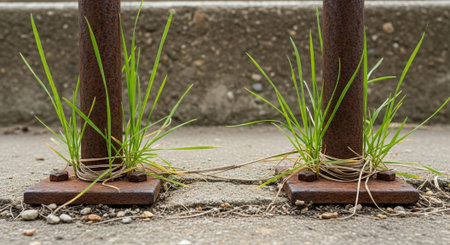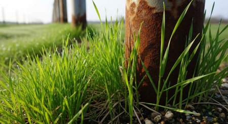 A close-up of green turf. Grass vegetation on the site of green belt construction