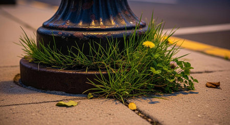Paper with round hole in the middle with grass