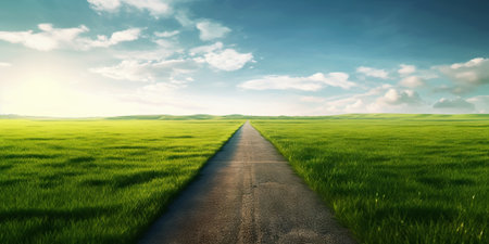 Beautiful grassland road. Minimalistic highway in countryside. Generative AI.