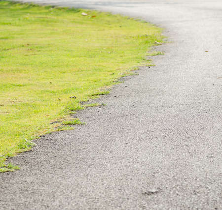 Green grass delimited by a desert asphalt.