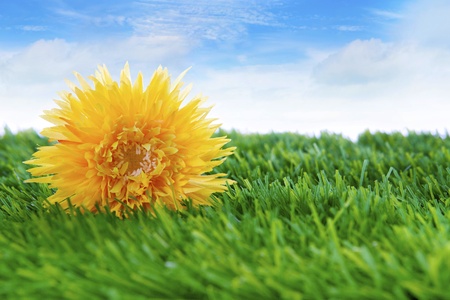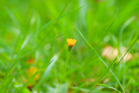 Yellow flower among green grass