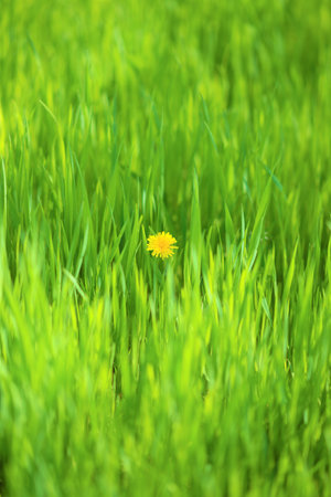 Yellow dandelion and green grass