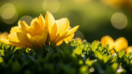 Closeup of yellow flower under sunlight with copy space using as background natural plants landscape, ecology wallpaper cover page concept.
