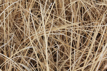 Rural agriculture objects and details concept. Detailed closeup dry of scattered hay