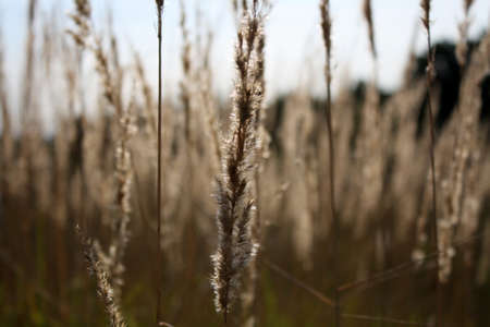 Sunset light on reeds grass background.