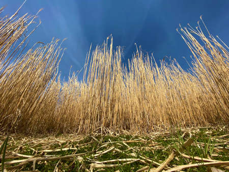 Yellow dry grass on a blue background.
