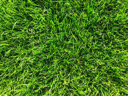 Top view of bright green grass, suitable for sports fields, garden scenes, or creating a fresh green background.