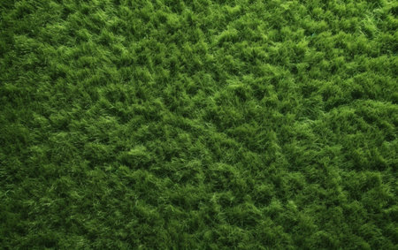 An overhead, detailed view of a lush green grass field showcasing the texture of individual blades and a vibrant...