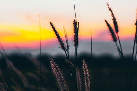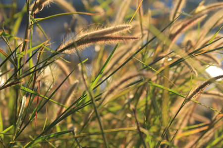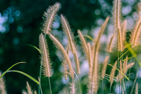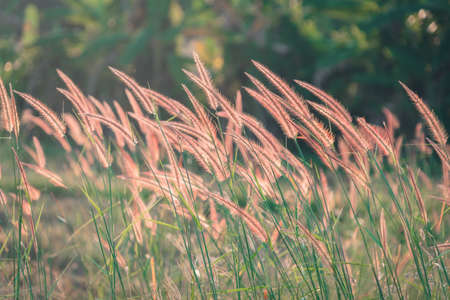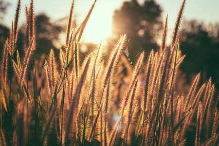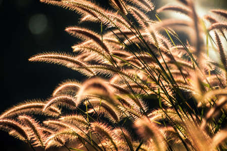 Mission grass or Feather pennisetum and sunset, Vintage backgrounds.