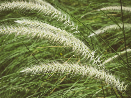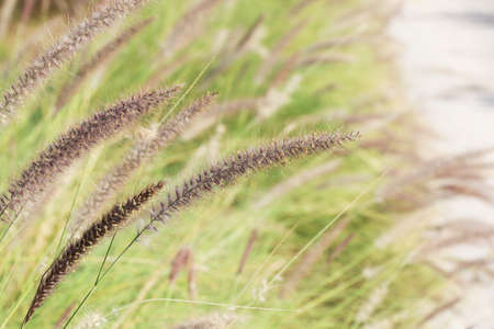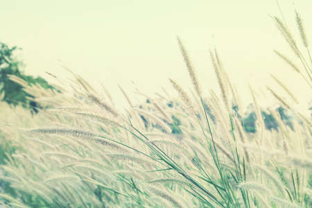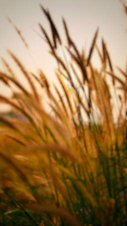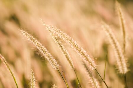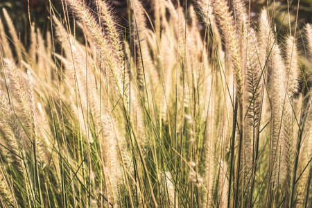 Soft Focus of Feather Pennisetum background, field of grass with morning warm tone and vintage style.