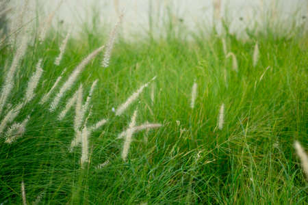 poaceae or flowers on green grass in side road. It is mild feeling ( Unfocused background)