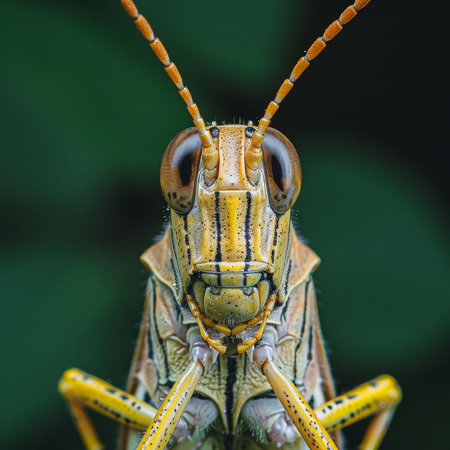 close up of a locust with black eyes
