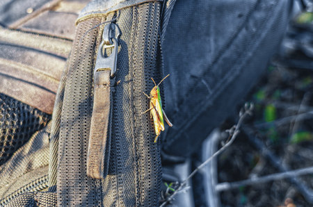 Close up of grasshopper in nature. Macro shot with shallow depth of field.