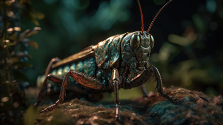 Crickets close-up, showcasing their unique anatomy, vibrant colors, and captivating features. Generative AI.