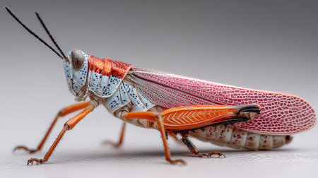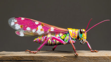 This vibrant grasshopper displays an array of colorful patterns, showcasing the beauty and diversity of insects in nature. Perfect for educational and artistic projects.