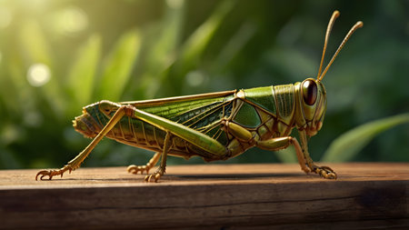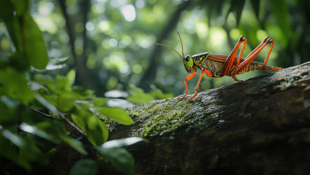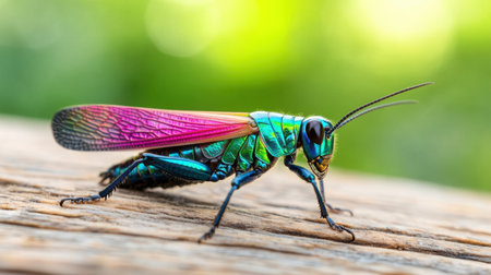 In the forest, an elegant grasshopper is perched on a fallen log, its vibrant colors contrasting with nature's greenery. This image was created using focus stacking, a close-up shot, and high-resolution photography techniques. The cinematography and cinematic angle give the image a hyper-realistic and hyper-detailed appearance, with a super-resolution and high dynamic range. --ar 53:30 --v 6.1 Job ID: 900a0161-f0ad-4084-972a-a9d8a0e4c8c0