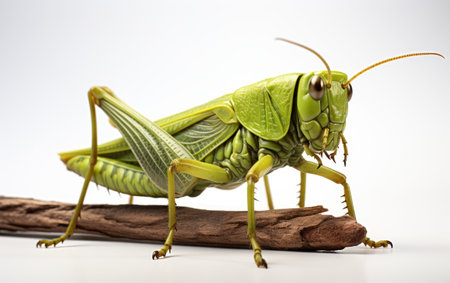 Vivid Close-Up of a Green Grasshopper on a Branch