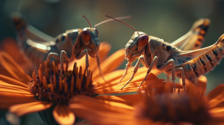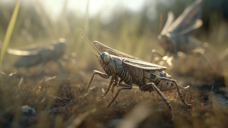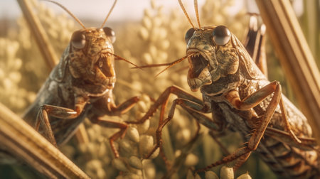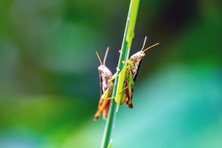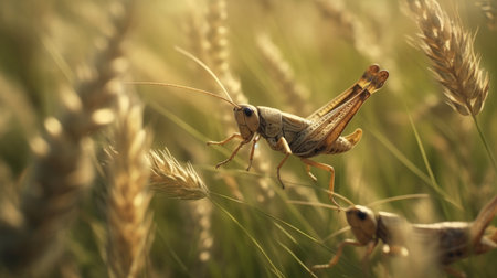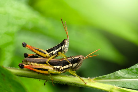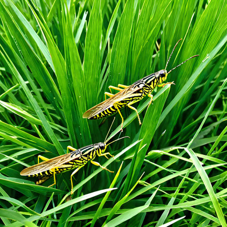 Generative AI : Couple of Grasshopper on grass