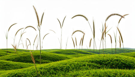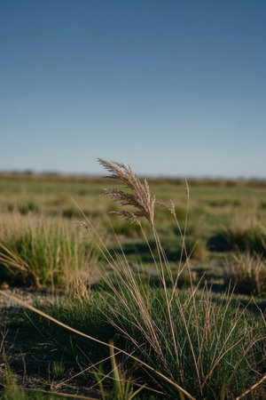 An AI generated illustration of a grassy field blowing in the wind on a breezy day
