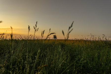 Lone tree captured in beautiful sunrise scenery in summer