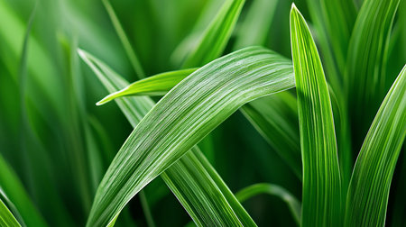 Vibrant Green Leaves Intricate Patterns and Textures of Curving Blades in Natural Light.