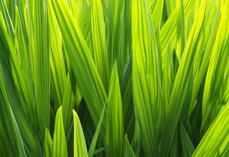 a full frame bright vibrant green glowing sunlit iris leaf nature background