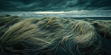 Dramatic Coastal Grasslands Dark Moody Ocean Waves Beach Scene Nature Photography sea sky art wind