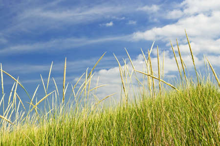 European marram grass with blue sky