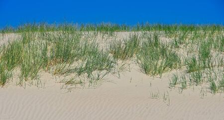 Grass on the beach in summer. Beautiful sand dunes.