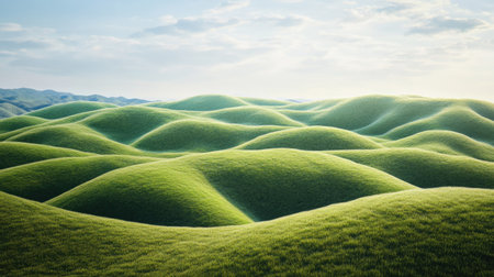 A breathtaking view of lush green rolling hills features gentle curves and a vibrant texture of grass, embodying the serenity and beauty of nature's landscape.