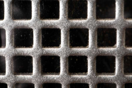 Close up of metal grating in warehouse. Selective focus. Toned.
