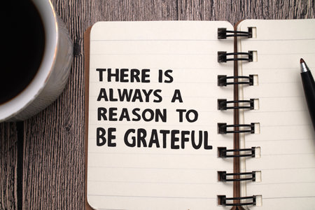There is always a reason to be grateful, text words typography written on book against wooden background, life and business motivational inspirational concept