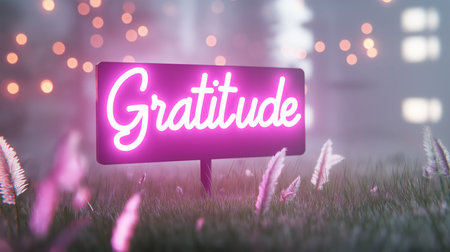 Glowing neon lettering Gratitude. A bright visual accent, a symbol of gratitude and positive attitude. Ideal for motivation and decoration.
