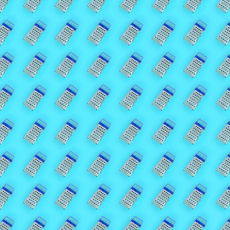 Metal vegetable grater on a blue background, pattern