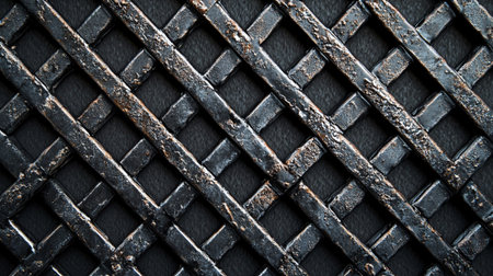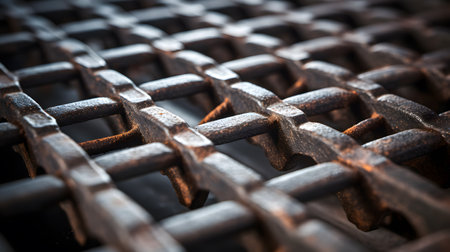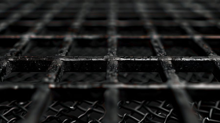 The closeup of a welded metal grid showcases the rough and rugged surface with a mix of smooth and sharp edges adding a sense of industrial style to the texture