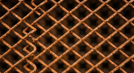 Abstract metallic grid background. Rusty industrial grid texture. Generated AI
