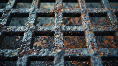 Close-up of a rusty metal grate. Selective focus.