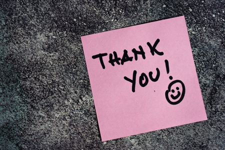 Thank you words written on a post-it or note.