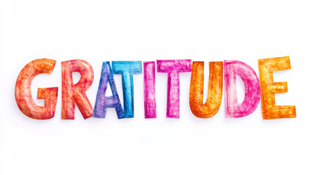 Vibrant Colorful Gratitude Word Art, Thank You Message, Positive Feeling, Isolated on White