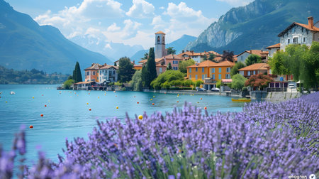 beautiful view of Iseo lake from the city of Lovere with copy space, Bergamo, Lombardy Italy.