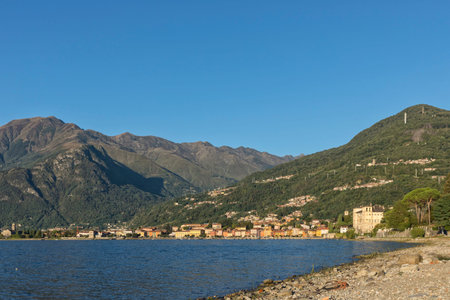 Embankment of the town of Menaggio against the backdrop of mountains. Lake Como, Italy