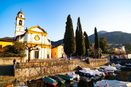 Portrait View of the Port and Marine of Cannobio, Piedmont, Italy, - June 13, 2020.