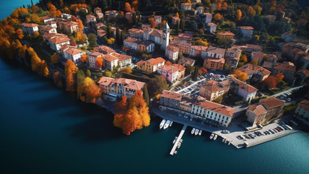 Generative AI : Aerial view of a small settlement near Isella a small village on Annone Lake Lecco Italy