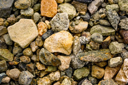 A detailed view capturing the unique textures and colors of gravel in a natural outdoor setting.