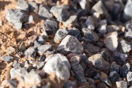 Building stones of grey on the road, close-up, small rocks or gravel used for construction of buildings