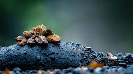 AI Generated. Sunflower seeds on black pebbles background