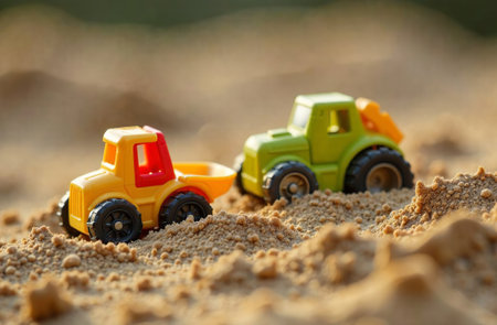 AI Generative toy children's tractor truck with sand stands in the sandbox