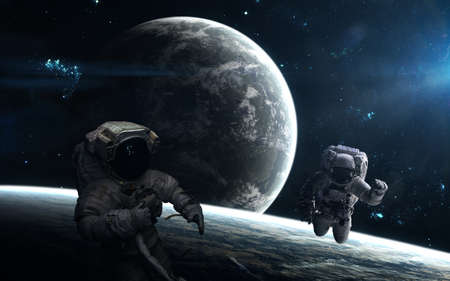 Astronaut spaceman do spacewalk while working for space station in outer space . Astronaut wear full spacesuit for space operation . Elements of this image furnished by space astronaut photos.
